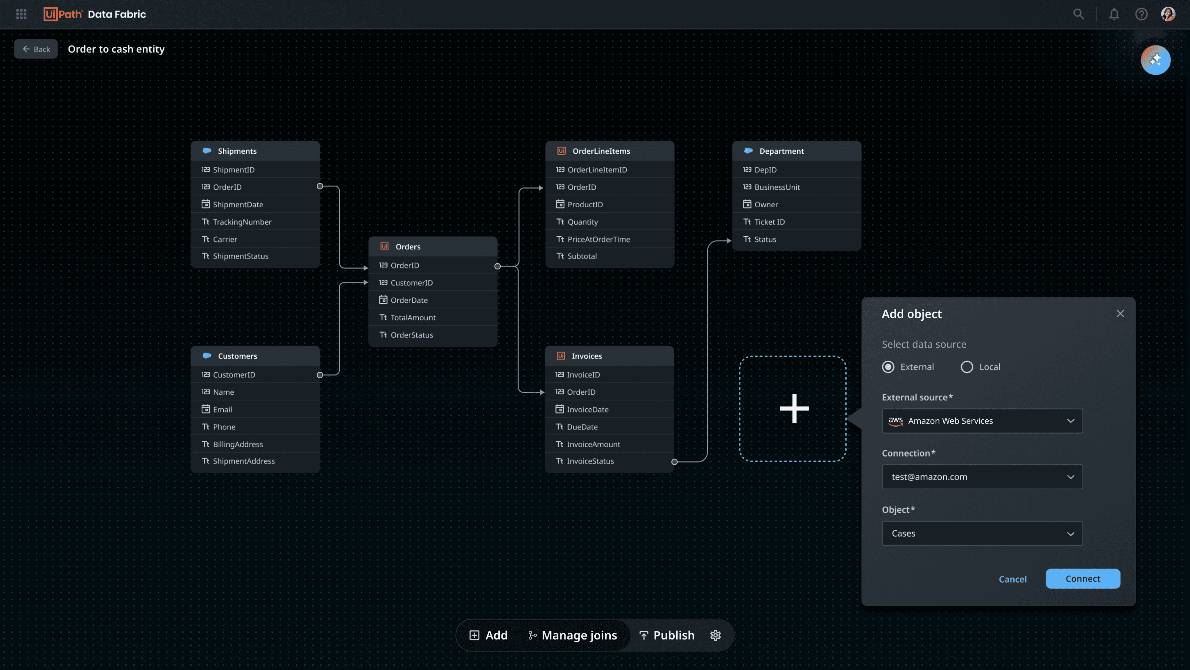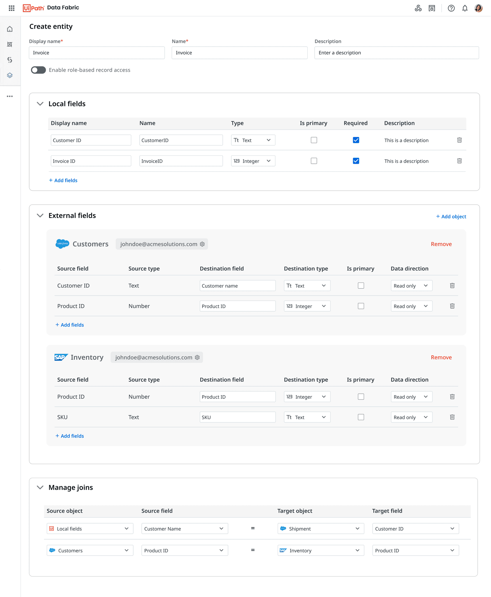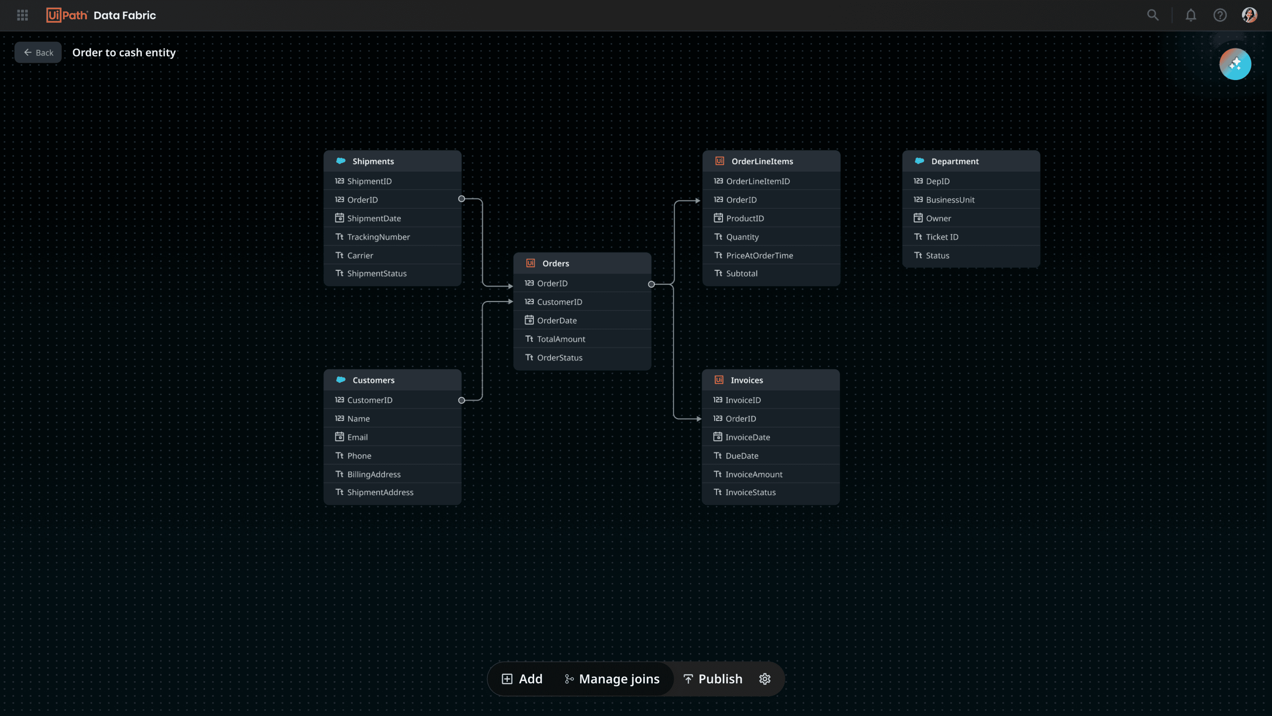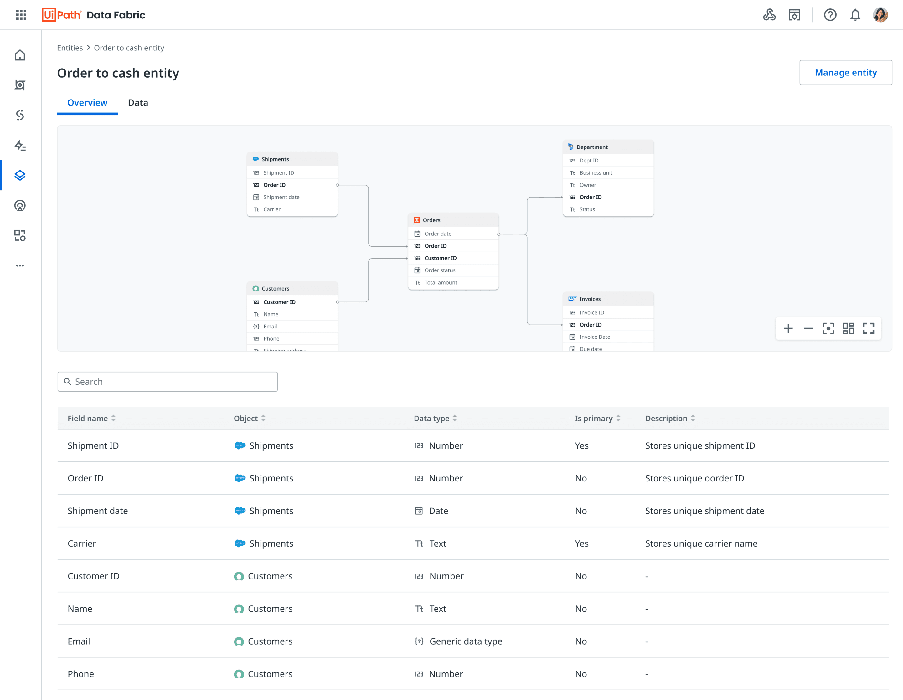 Data Fabric lets users access & manage data from multiple external sources through a single, unified layer. This unified layer can be consumed across UiPath platforms for Automations, Process Orchestration, Low-code App development, AI Agents