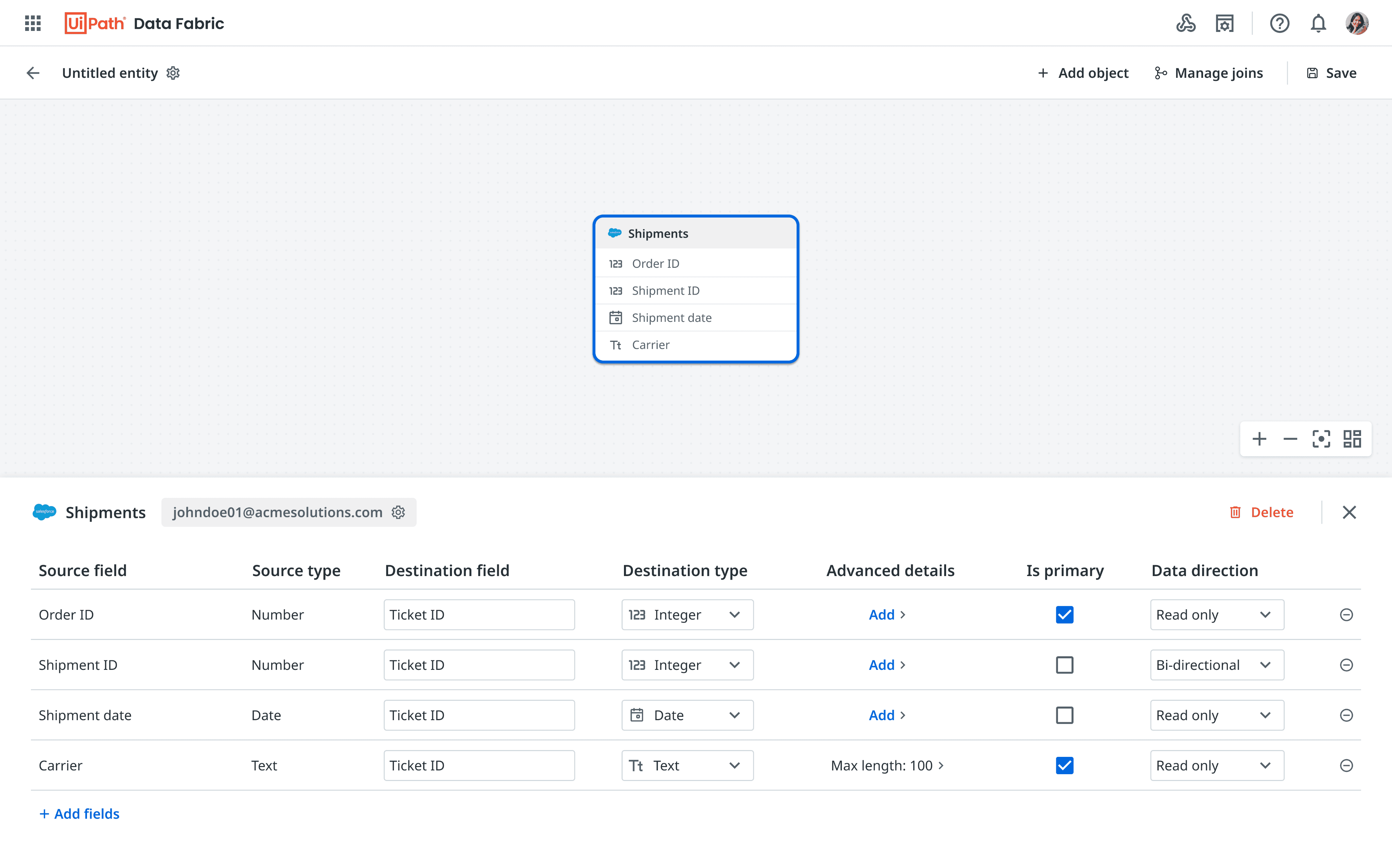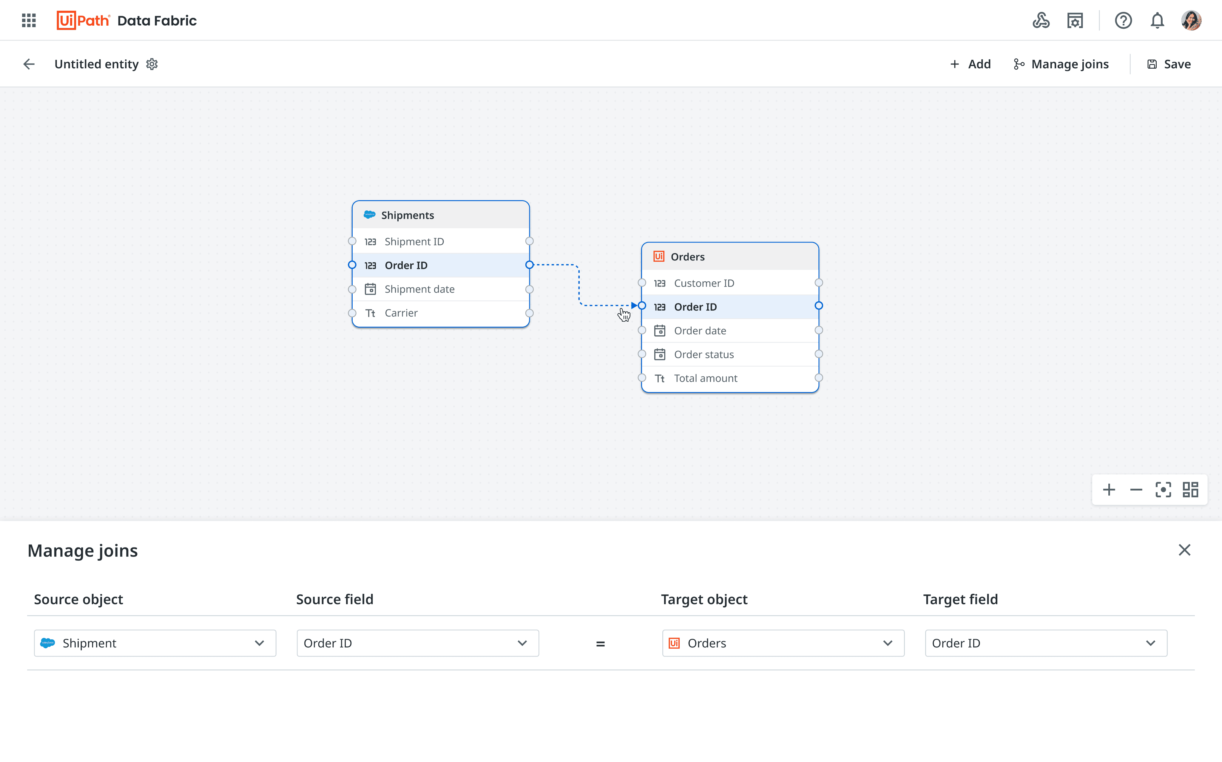 Alternatively, they can also click on manage join on top nav to open the ‘Manage join’ section - here they can select the fields for which they want to define a join
