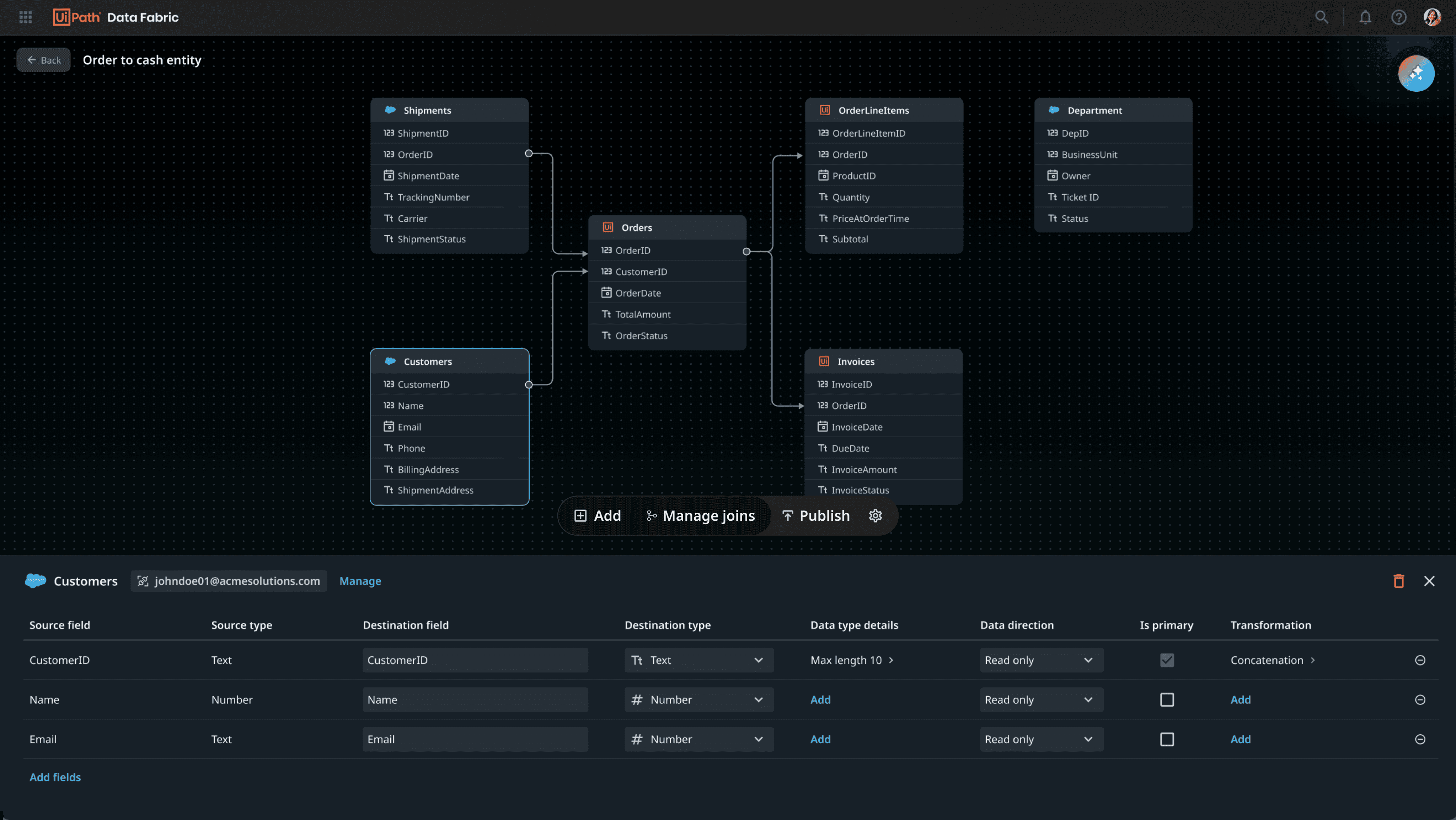 Data Service was UiPath’s internal database for storing and managing structured data, limited to native app data without external integrations. Our goal was to revamp Data Service to Data Fabric.