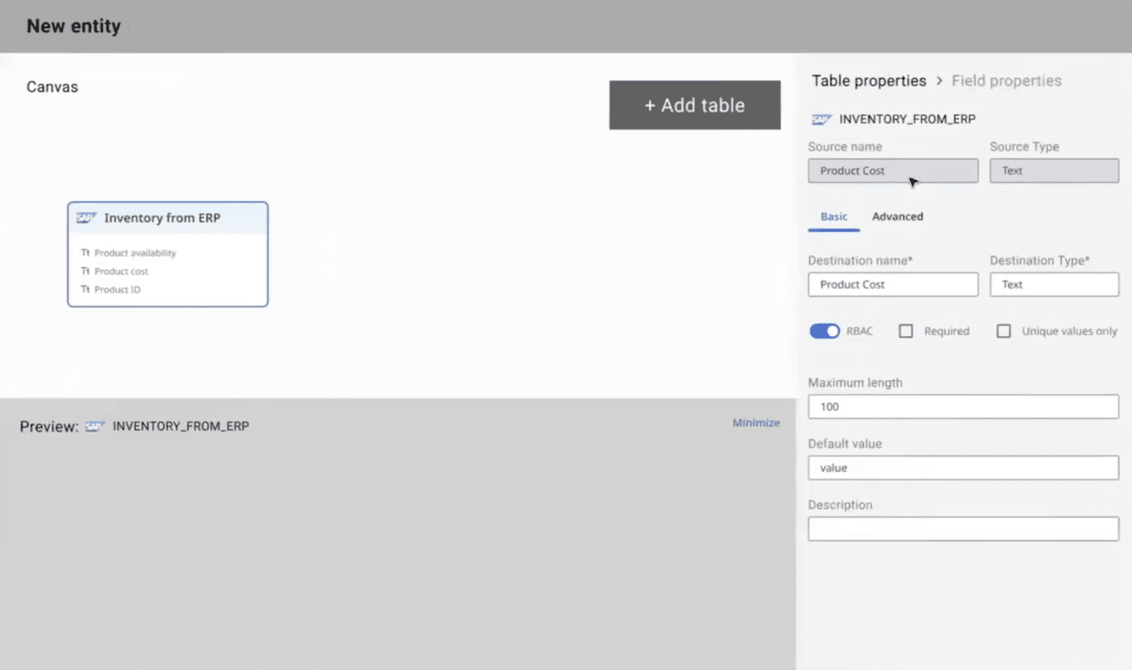 Would prefer interactions through ERD. They do not want to use the bottom panel for managing fields and field properties